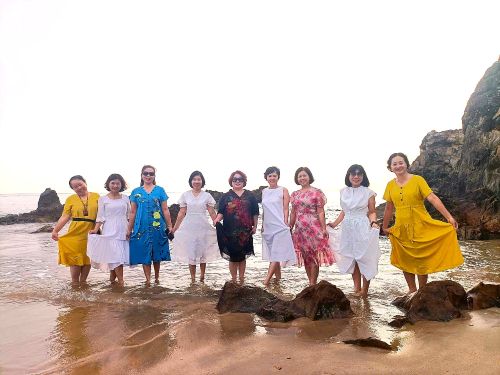 (Ảnh: Các nhà văn nhóm Búp tại bãi biển Đá Nhảy tháng 7/2025)