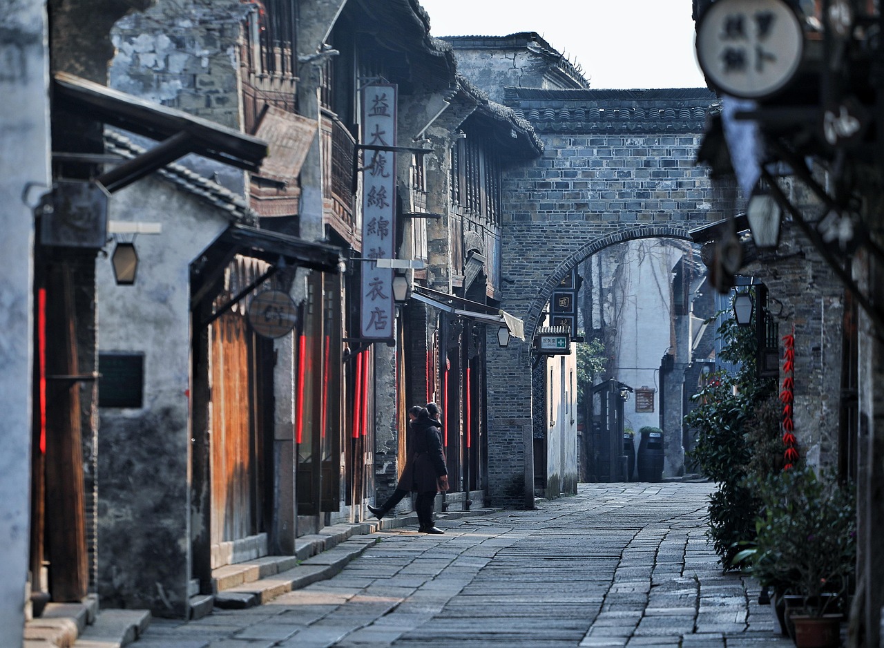 Buổi chiều thư thả dạo phố xem hàng tơ lụa. Vào một dinh thự cổ giới thiệu tinh hoa tơ lụa Jiangsu.