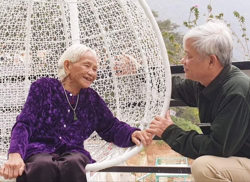 (Ảnh: Nhà thơ Nguyễn Sĩ Đại bên thân mẫu của mình)