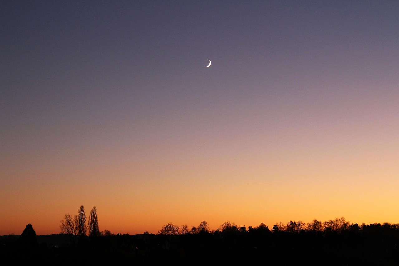Có một mảnh trăng lưỡi liềm mỏng manh xanh ngắt lạnh lẽo vời vợi cuối trời.
